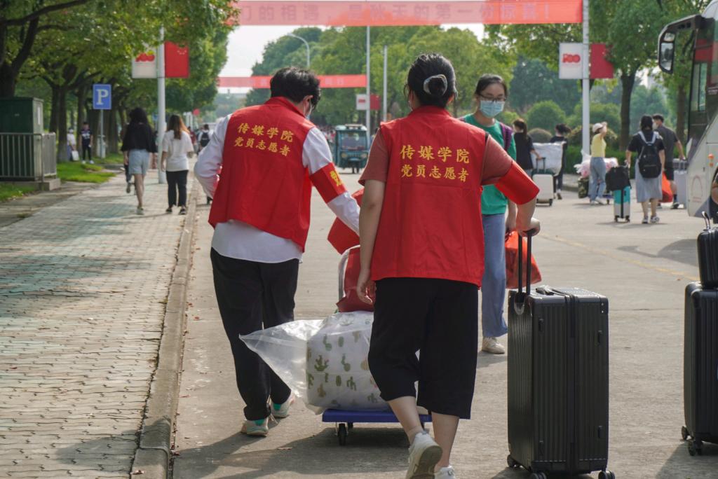 9月15日,伟德国际1946bv迎来了8000余名新生,来自bevitor伟德国际1946的40余名党员组成迎新志愿服务队,他们佩戴党员徽章、身着红色马甲,积极走上迎新岗位,接过新生手中沉甸甸的行李箱,指引新生有序报到,穿梭在熙来攘往中,成为了一抹红色的校园风景线。