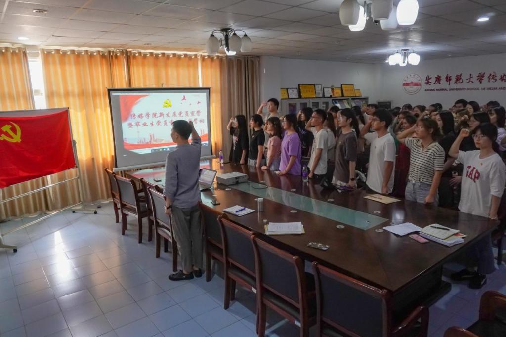 新闻学学生党支部毕业生党员新闻学专业2017级的黄倩倩分享了自己的入党经历,她说:“党员重温入党誓词,是毕业离校之际,提醒我们不忘入党时的初心,在未来工作中,坚定理想信念,做对社会有贡献的人。”