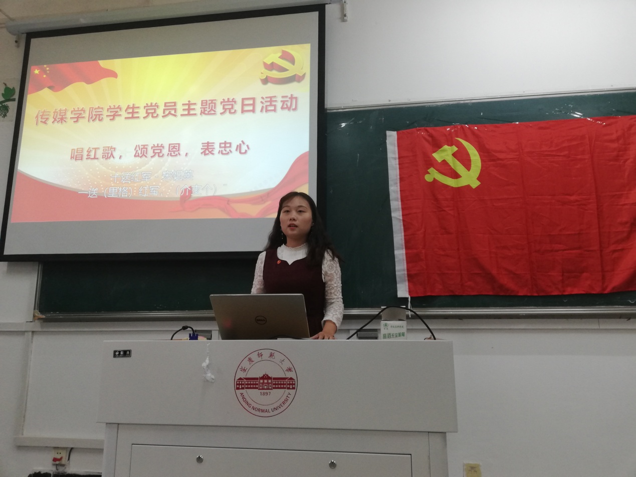 “一送(里格)红军,(介支个)下了山,秋风(里格)细雨,(介支个)缠绵绵,山上(里格)野鹿,声声哀号叫,树树(里格)梧桐,叶呀叶落光,问一声亲人,红军啊,几时(里格)人马,(介支个)再回山……” 10月10日,bevitor伟德国际1946全体学生党员开展“唱红歌 颂党恩 表忠心”主题党日活动,学唱红色歌曲《十送红军》,借红歌之名,颂党的恩情,不忘初心跟党走。活动由广播电视学学生党支部书记董小雨老师主持。