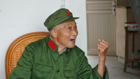 图为抗美援朝铁道兵汪顺南为实践团成员讲述参军远大抱负。