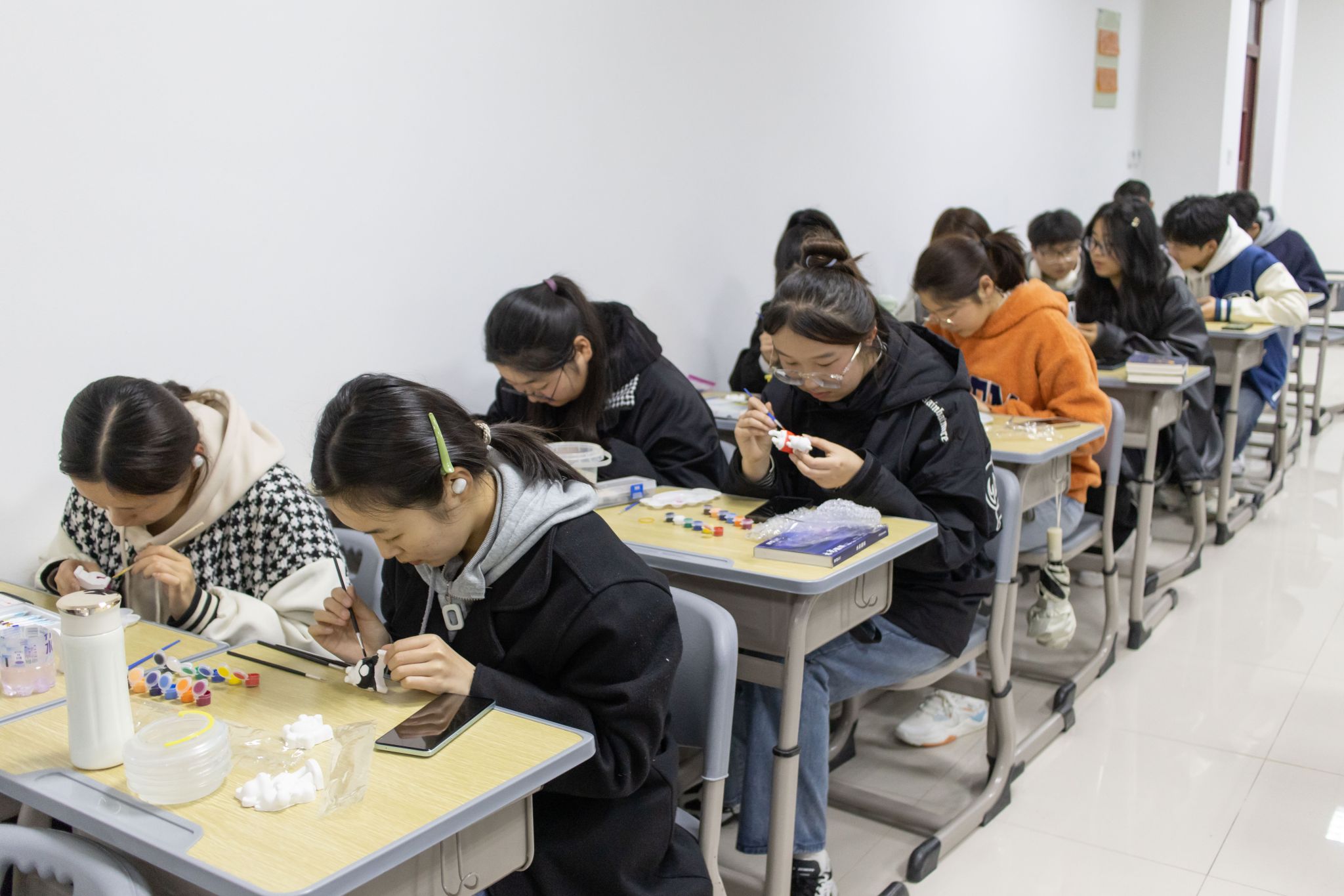 考虑到本专业曾开设过色彩与造型这门课程,同学们学习了色彩的层次及搭配,审美水平得到提高,且有一定的绘画基础,史佳琪与班委会成员商量后决定开展涂石膏娃娃活动,希望班级每位同学都参与其中。