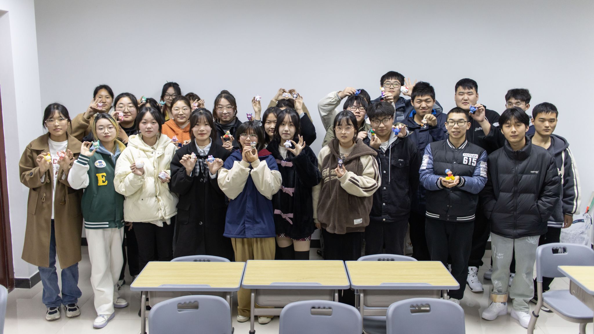 购买石膏娃娃前,班长史佳琪和班委会成员私下询问了同学们喜欢的卡通人物样式班委会成员将买来的石膏娃娃和各色颜料放在闲置的桌子上,学生们按照学号依次上前挑选自己心仪的卡通娃娃。