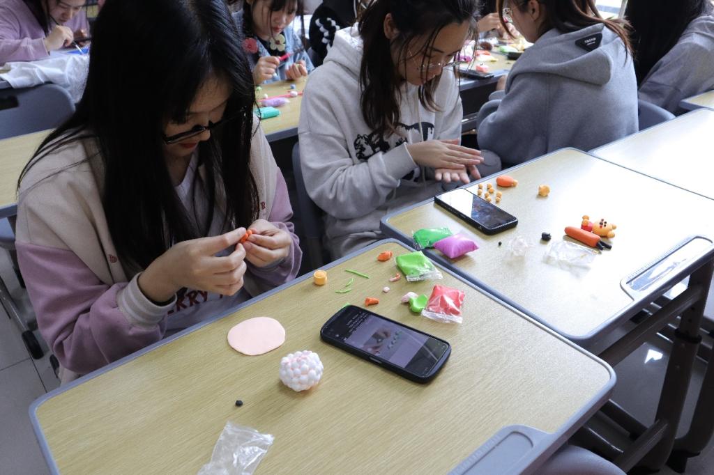 “一开始使用软陶时很难捏成预想中的形状,在逐步掌握操作的技巧后,我渐渐熟练起来,可以将软陶捏成想要的形状。”新闻传播学类专业2021(2)班李欣悦表示会将软陶成品摆在寝室书桌上作为摆件。“我感觉本次手工活动很有趣,可以让浮躁的心安静下来,希望学院多多举办手工类活动。”