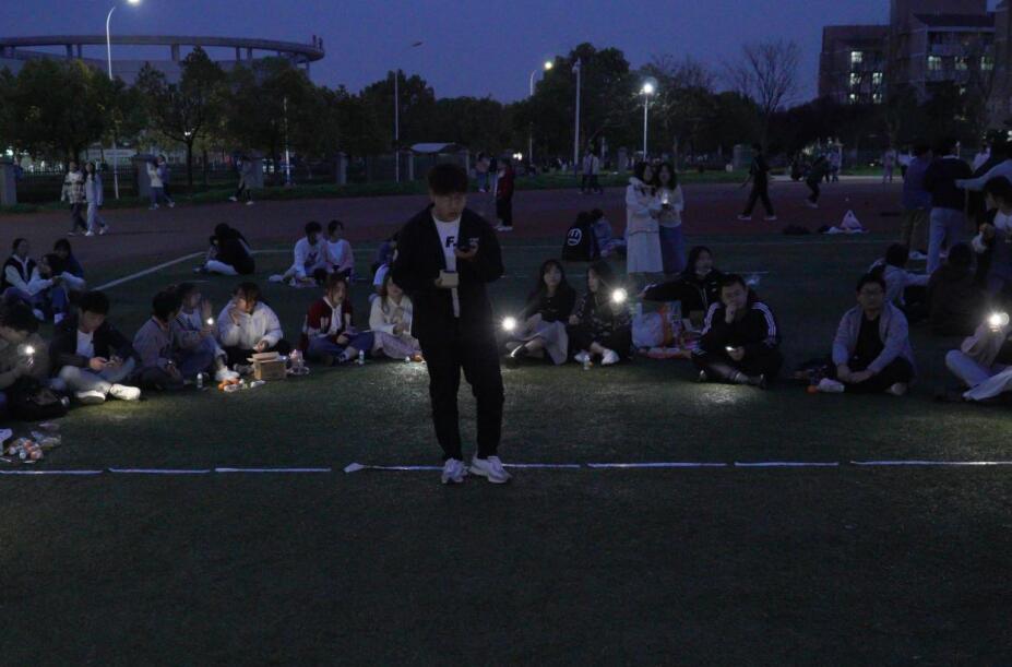 团建时间持续了两个小时,随着散步、夜跑等学生人数的增多,现场环境逐渐嘈杂,没有准备音响一度让活动陷入“困境”。“我有一个小的蓝牙音响当时就拿过来了。”新闻传播学类专业2021(1)班的陈佳慧表示,机缘巧合之下帮助大家解决活动中遇到的困难感觉超有满足感。“六十多部手机手电筒就像闪着光芒的萤火虫一样在空中摇摆,我真的觉得很温暖。”