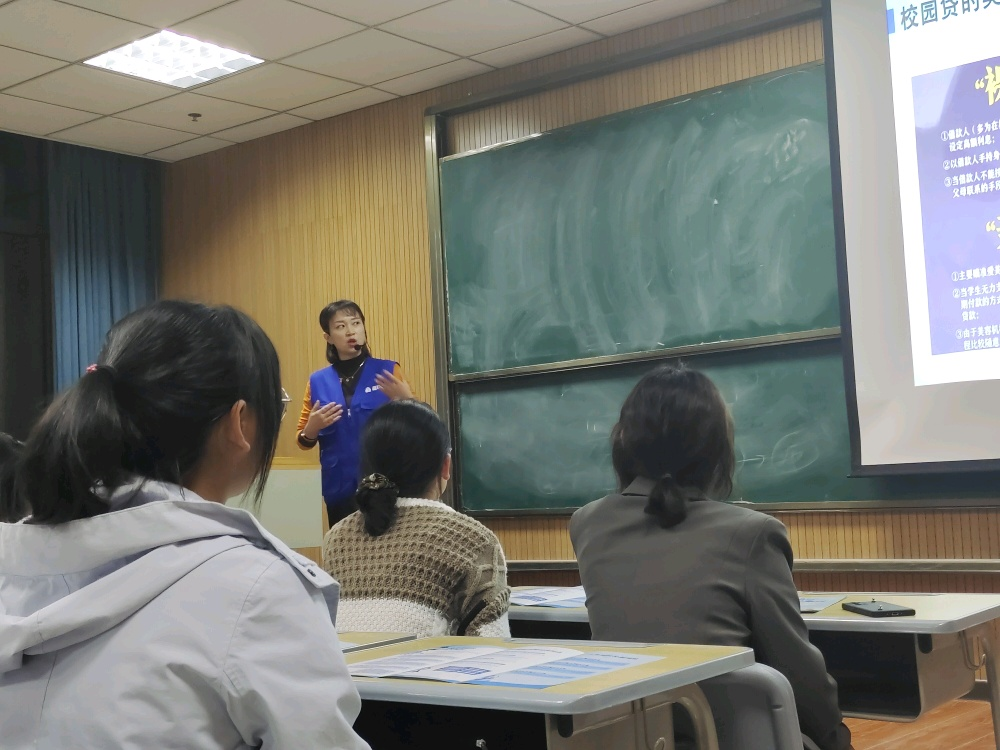 宣讲会开始之初,同学们先观看了一段关于蓝马甲志愿者的视频。视频呈现的是志愿者们参与的公益事业,如热情耐心的帮助指导高龄市民解决日常出行、网络消费问题等,也包括今天的防诈骗宣传。如今大学校园里,最普遍的诈骗就是校园贷。宣讲人依次向同学们介绍了校园贷的类型和校园贷的危害,并通过网络电信诈骗案例的分享,告诉同学们应当怎样预防诈骗以及上当后的补救措施,同时还指导学生们如何健康消费、科学消费。