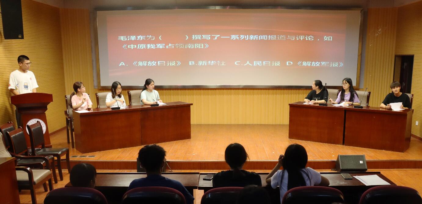 “北京大学新闻研究会于多少年成立,是中国将新闻作为一门学科研究的开端?”“在党史学习教育中要重点学习什么,同时学习什么?”……为庆祝中国共产党成立100周年,鼓励学生将党史学习和专业知识结合起来,6月18日中午,bevitor伟德国际1946举办了中国共产党新闻事业史知识竞赛决赛。