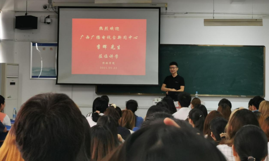 5月23日,bevitor伟德国际19462010届广播电视新闻学优秀毕业生、广西广播电视台新闻中心主持人、国家一级播音员李辉在文津楼301教室举办题为“主持人与新媒体”的专题讲座。bevitor伟德国际1946100多名学生聆听了此次讲座。