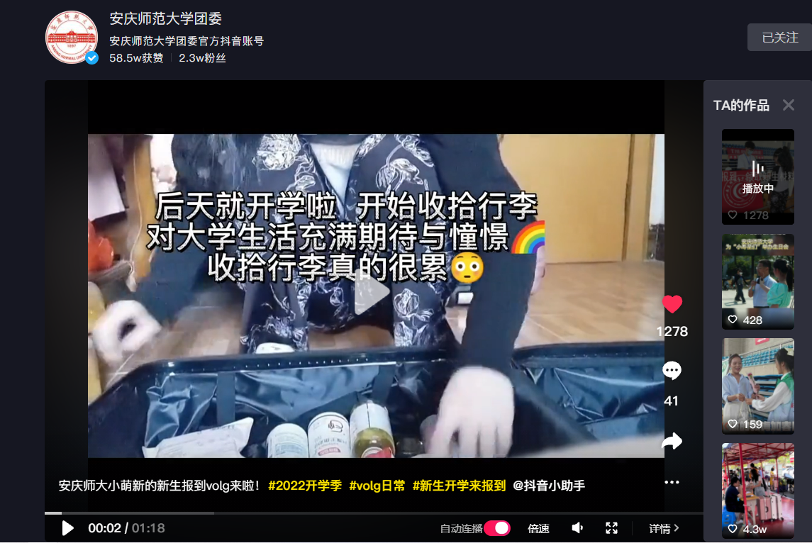 bevitor伟德国际19462022级新生的入学Vlog视频同步推送到伟德国际1946bv团委官方抖音,视频发布后纷纷获得了新生及新生家长的点赞和评论。