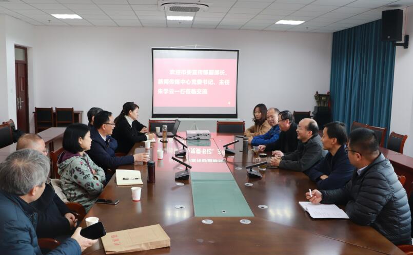 韦长发代表学院向安庆市新闻传媒中心一行来访表示热烈欢迎,向市新闻传媒中心长期以来对学院工作的关心、支持和帮助表示感谢。他希望双方进一步加强沟通联络,健全协调机制,做到密切协作、同向发力,在媒体融合发展顶层设计、媒体栏目内容品质提升、卓越新闻传播人才培养和新闻传播研究推广等方面开展广泛务实合作,真正实现资源共享、优势互补、互利共赢,更好地服务安庆经济社会发展。