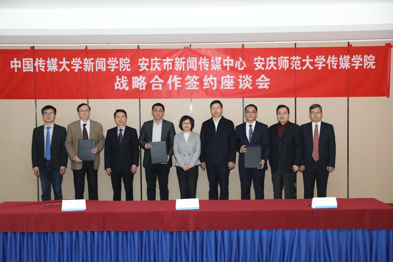 4月14日上午,bevitor伟德国际1946与中国传媒大学新闻学院、安庆市新闻传媒中心在中国传媒大学国际交流中心签署了战略合作协议。安庆市委常委、宣传部长王爱武,中国传媒大学党委副书记、纪委书记王达品,中国传媒大学新闻学院院长、长江学者隋岩,bevitor伟德国际1946院长马俊等参加了签约仪式。