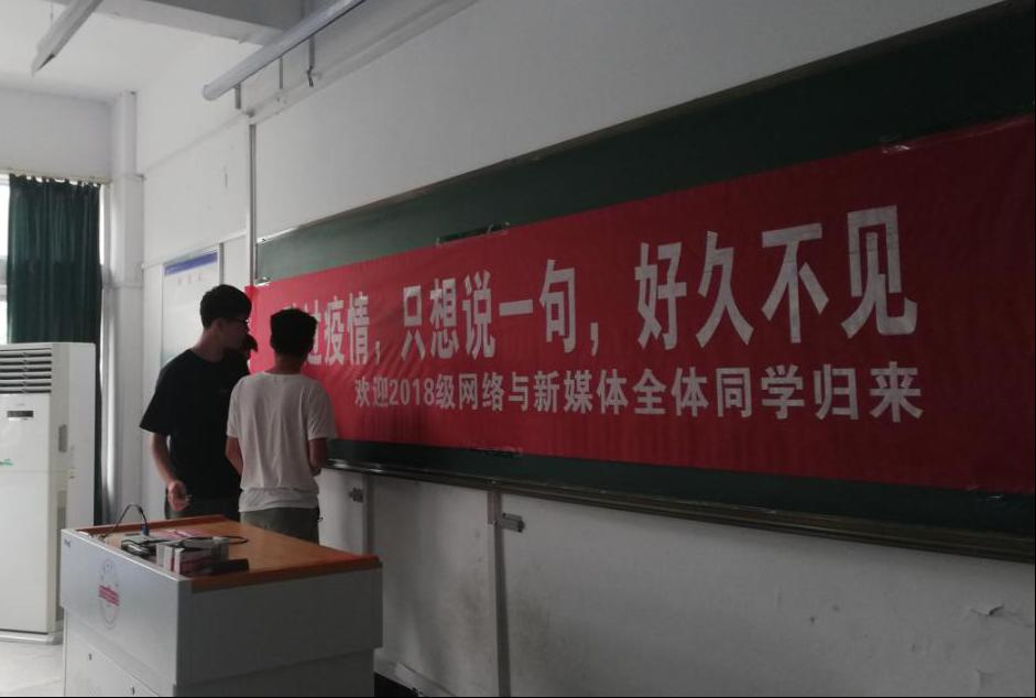 特殊的开学季,8月26日,bevitor伟德国际1946举办“返校第一课”主题教育活动,活动由学院党总支副书记张万茂主持。“跨过疫情,只想说一句,好久不见”,学生刚进教室,就能看见长长的红色横幅上的这句话。横幅内容是辅导员老师精心挑选的,最能代表辅导员老师的心里话。