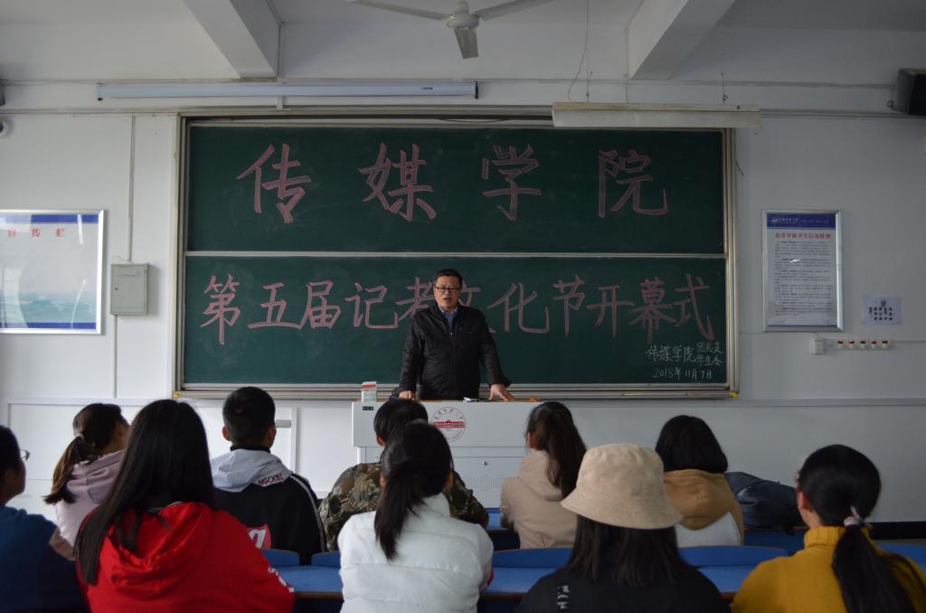 11月7日下午,bevitor伟德国际1946举行了第五届记者文化节开幕式。部分教师代表和120余名学生参加了开幕式。开幕式由学院副院长王业明主持。