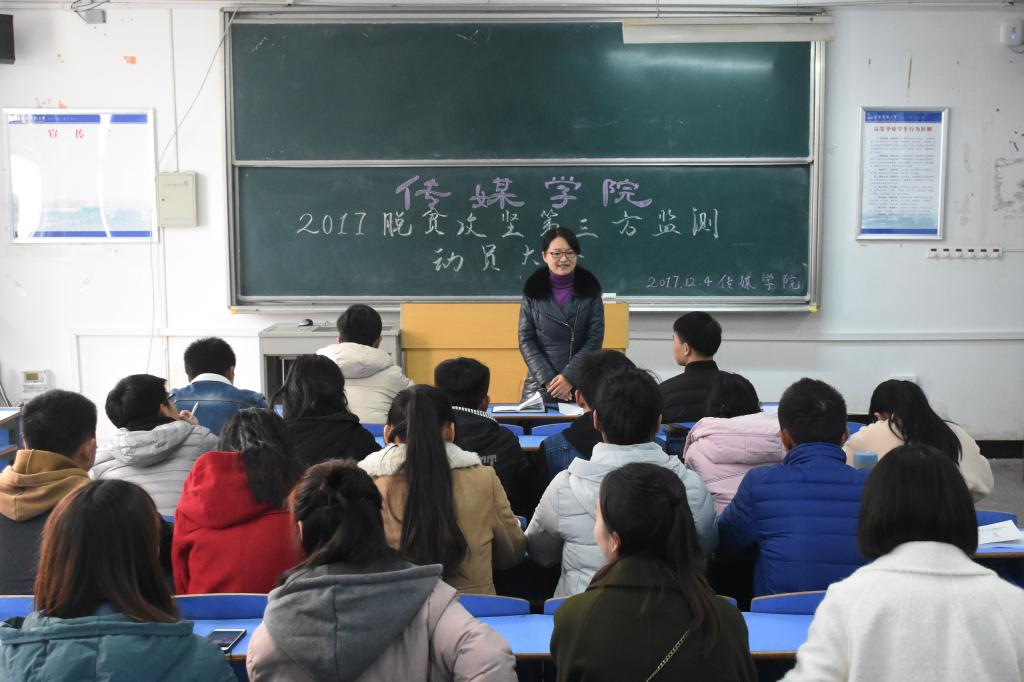 12月4日中午,bevitor伟德国际1946召开2017年下半年脱贫攻坚第三方监测评估动员会,党总支书记陈秀做动员讲话,学院2名带队老师和13名学生代表参加。