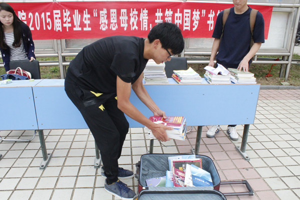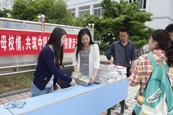 “带不走的,留不下的送给学弟学妹吧……”5月6号早,bevitor伟德国际1946在敬敷广场举行2015届毕业生“感恩母校情,共筑中国梦”书籍捐赠活动。