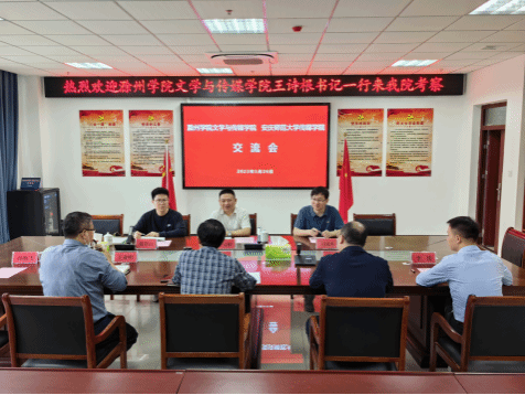 5月26日,滁州学院文学与bevitor伟德国际1946党委书记王诗根一行3人应邀来bevitor伟德国际1946考察交流。学院党委书记詹德全、副院长王业明、副院长段萱、党委秘书和教研室主任代表参加交流会。