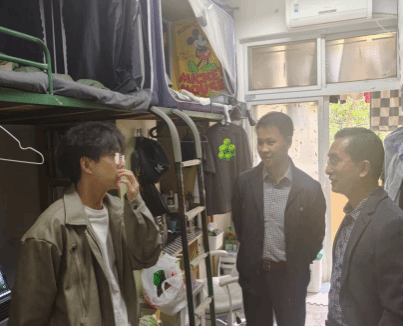 詹德全每到一间宿舍,都与同学们就校园生活、学风建设、课堂学习、学生活动以及学院的教学、管理方面存在的问题和同学们近期关注的热点问题等亲切交流,同时也指出目前部分同学以及宿舍环境等存在的问题。