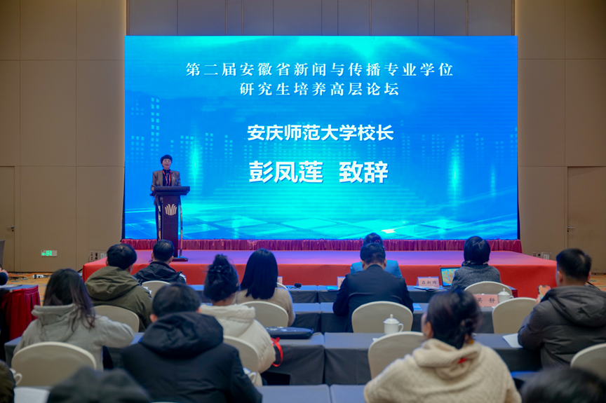 12月19日至20日,学院与研究生院联合承办了“第二届安徽省新闻与传播专业学位研究生培养高层论坛”。校长彭凤莲出席会议并致辞。校党委常委、宣传部部长陈秀主持开幕式。来自省内外16所高校的百余位专家学者和研究生参加了会议。