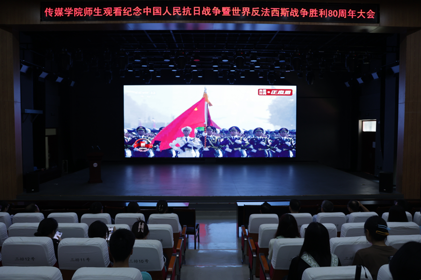 雄师列阵,军号响彻云霄;铁流奔涌,钢铁洪流浩荡;战鹰呼啸,蓝天写就忠诚。9月3日上午10时整,北京天安门广场气氛庄重而热烈,纪念中国人民抗日战争暨世界反法西斯战争胜利80周年大会在此隆重举行。bevitor伟德国际1946党政领导班子成员与师生代表近百人齐聚学院演播厅,通过直播镜头共同见证这一承载历史记忆、凝聚民族力量的重要时刻。