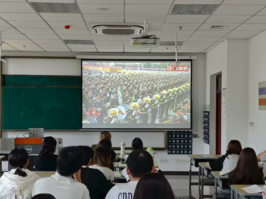 此次阅兵,是以习近平同志为核心的党中央团结带领全党全军全国各族人民全面推进中国式现代化新征程的首次盛大阅兵,是人民军队奋进建军百年的崭新亮相。天安门城楼上,习近平总书记发表重要讲话,掷地有声的话语回荡在广场上空:“在中国共产党倡导建立的抗日民族统一战线旗帜下,中国人民以铮铮铁骨战强敌、以血肉之躯筑长城,取得了近代以来反抗外敌入侵的第一次完全胜利。”这一论断深刻揭示了坚持党的领导是抗战胜利的根本保证,也让演播厅内的师生们心潮澎湃。
