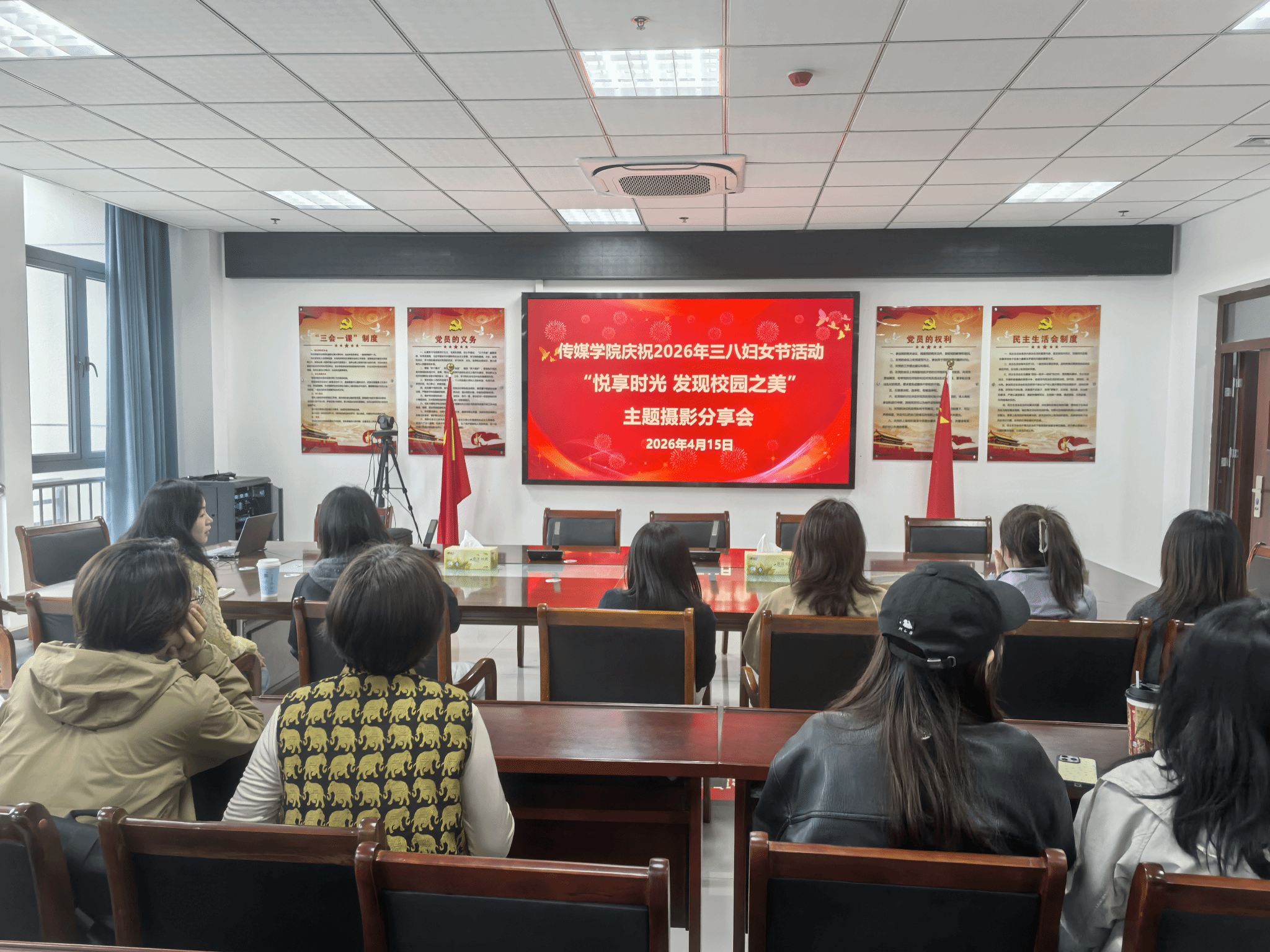 为庆祝第116个“三八”国际妇女节,丰富女教职工业余文化生活,bevitor伟德国际1946于2026年4月15日下午举办“悦享时光 发现校园之美”主题摄影分享会,学院全体女教职工参与活动。