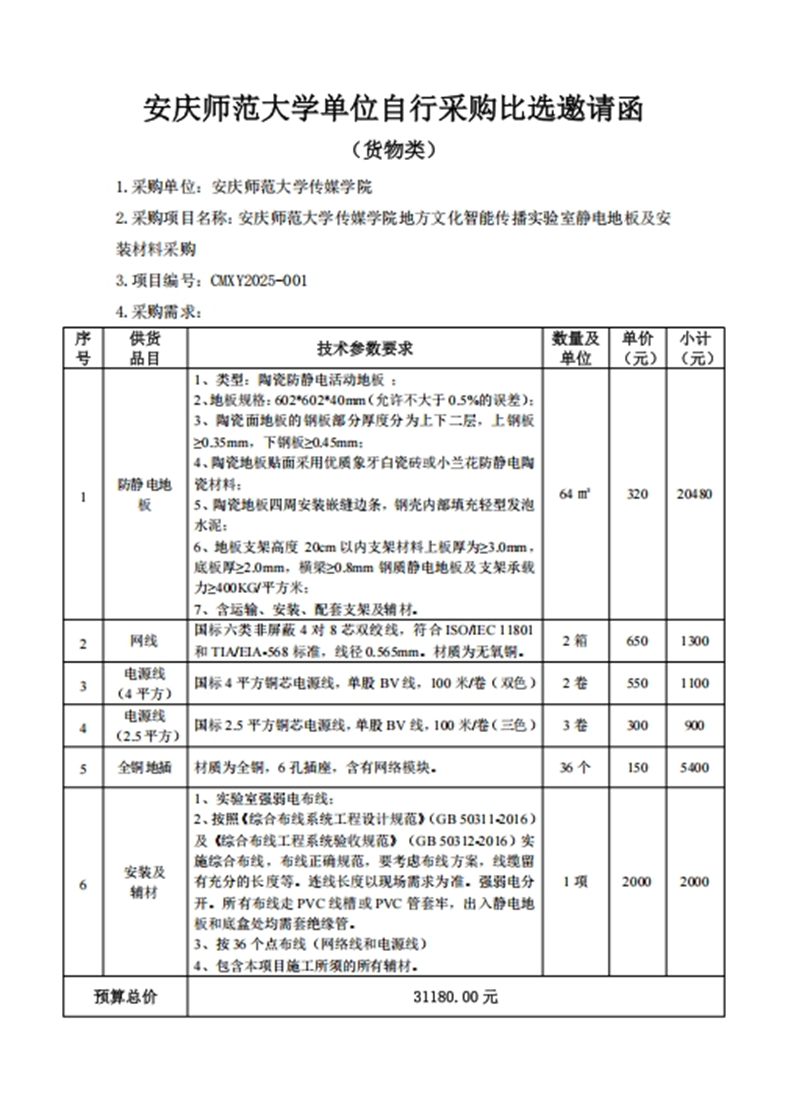 bevitor伟德国际1946地方文化智能传播实验室静电地板及安装材料采购比选邀请函.docx