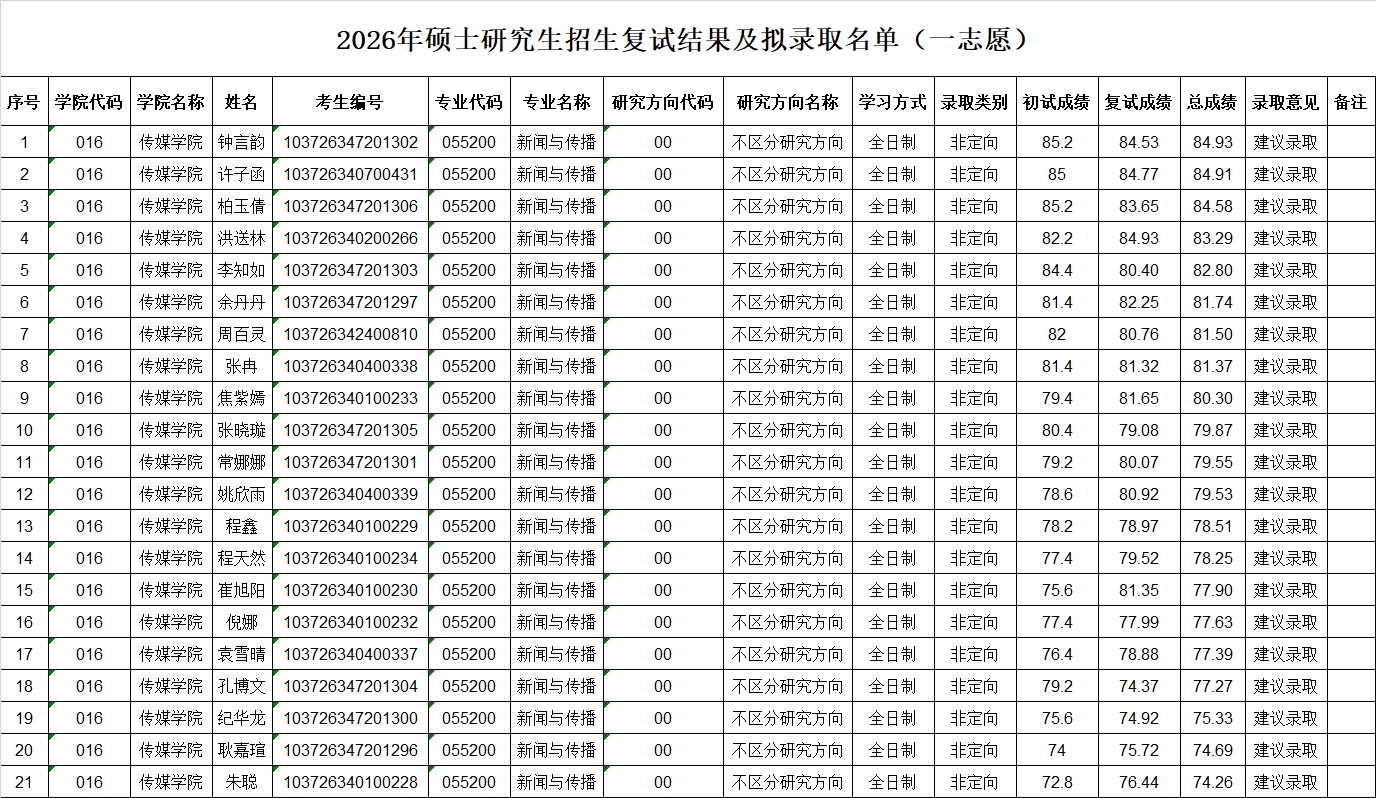 bevitor伟德国际19462026年硕士研究生复试一志愿拟录取名单