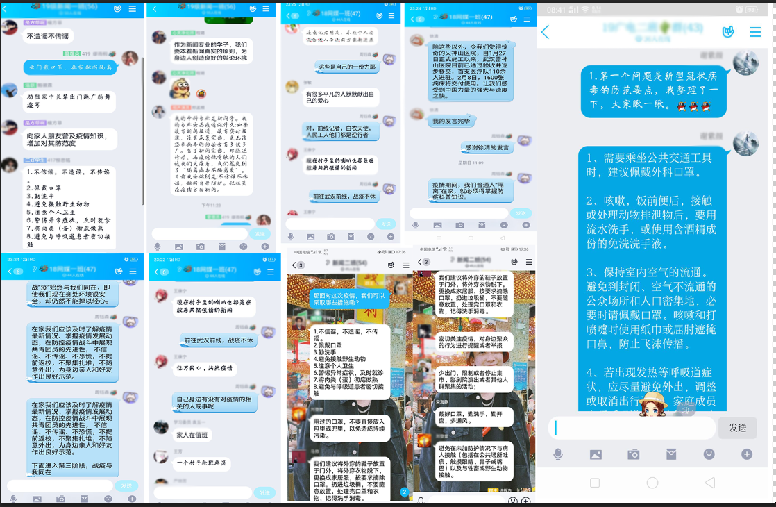 “我们的团日活动因为受疫情限制,分由各班在线上班级群内举行。”学院团委书记董小雨介绍,学院各班级在2月8日至2月10日依次举办了线上团日活动,根据反映的情况来看,目前取得的效果显著。“同学们,因为疫情严重,我们的团日活动只能在线上举办了,首先请大家依次汇报一下近期自身的身体健康情况吧……”2月7日,在学院广播电视学专业2018(1)班的班级群内,该班团支书孙达徽正在主持这场特殊的团日活动。