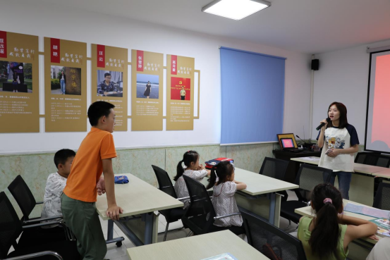 随后,一场别开生面的红色知识有奖问答环节将活动推向了高潮。问题涉及革命历史、英雄人物等多个方面,同学们踊跃参与,积极抢答,展现出了极高的参与热情和良好的知识储备,现场气氛热烈而有序。在这一环节中,孩子们在师大学子的引导下不仅增加了对中国共产党的认识和了解,学习了五星红旗上的五颗星星分别代表的含义等等,还加深了对红色文化的理解和认同。
