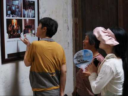 成员们走进洪谦家族的居房,这里的建筑都是徽州的经典布局。村干部还亲切地向成员们介绍了一些徽式的家具特色,例如“半圆桌”,展现了徽州人对家庭团聚的重视程度。墙上挂着洪谦先生及其家人的照片,他深邃的眼神仿佛穿越时空,敦促后人去后人去思考更多关于人类、社会、宇宙的哲学问题。在这里不仅能见证洪谦先生严谨治学的态度和对知识的无限热爱,还能感受到三阳镇的人杰地灵。