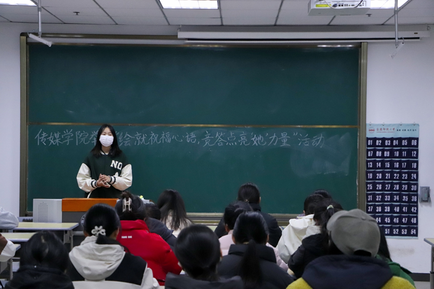 “国际妇女节是哪一天?”“国际妇女节最初是为了纪念哪一群体?”“国际妇女节的标志是?”……知识竞答环节拉开了活动序幕。主持人话音刚落,现场的学生们便纷纷举手抢答。新闻学专业2023(3)班靳安琪表示:“这种竞答形式大大激发了我的胜负欲,提高了我的积极性,让我在参与游戏的同时也能学到知识。”她认为,活动采取的奖励机制,不仅让她在答对题目时获得成就感,还使她对妇女节意义的理解更加深刻。