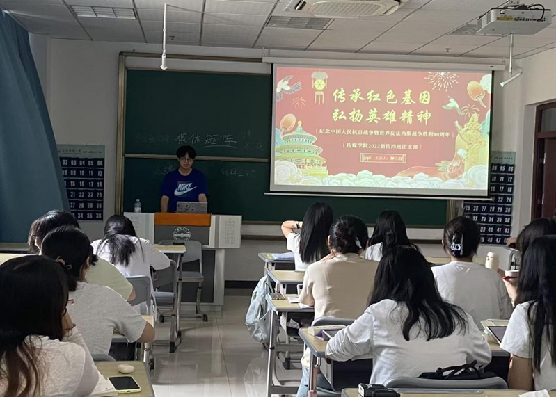 在主题团日活动中,班级以回顾抗战历史为开场。通过播放珍贵的历史影像资料,同学们仿佛穿越时空,回到了那段战火纷飞的岁月。2024级新闻传播类1班的同学在观看后分享:“以前对抗战历史的了解停留在课本,这次影像让我真切感受到胜利的来之不易,英雄们的牺牲太沉重了。”