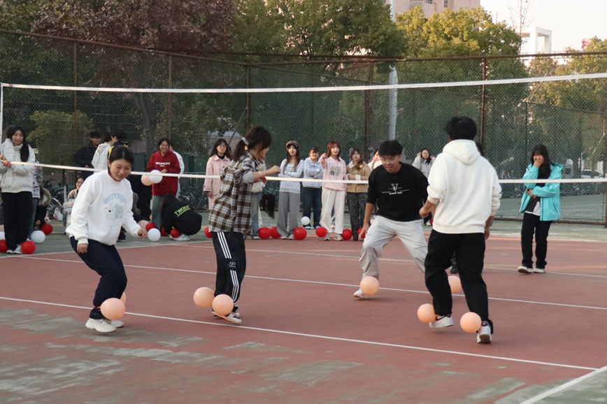 各支队伍在比赛中相互配合,现场氛围热烈。疯狂气球既考验选手的反应速度,还要求团队的配合。新闻传播学类专业2025(2)班李晓彤说:“在这个比赛项目中,我感受到了团队的力量,和队友一起去踩爆对手的气球,大家慌慌张张又忍不住笑的样子十分欢乐。”她表示,此次运动会不仅拉近了与同学们之间的距离,也让她更快找到了在班级、校园里的归属感。