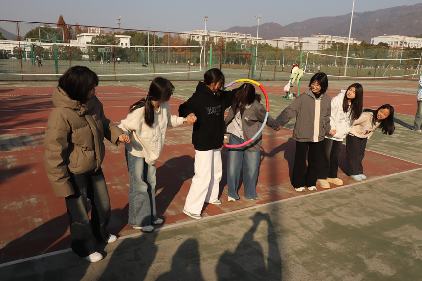 “整个活动中最令我印象深刻的是一圈到底。作为大一新生,在赛前我与同班队友并不熟悉,但在比赛中我们却展现出十足的默契,大家相互配合,相互包容。”新闻传播学类专业2025(3)班陈佳美分享道。她坦言,当呼啦圈顺利传递至队尾,大家齐声欢呼、击掌相庆,那份无需多言的默契与喜悦直击人心。这个瞬间让初入校园的她深切体会到团队的凝聚力,也快速感受到了集体的温暖,成为她融入校园生活的珍贵记忆。